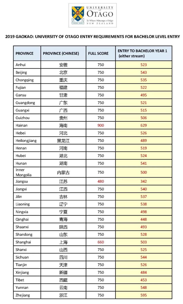 奥塔哥大学要求申请人的高考成绩达到所在省份指定的一本分数线,想要申请的同学可以参考一下2019年奥塔哥大学的高考录取分数线,了解一下申请奥塔哥大学本科课程需要达到多少分。
