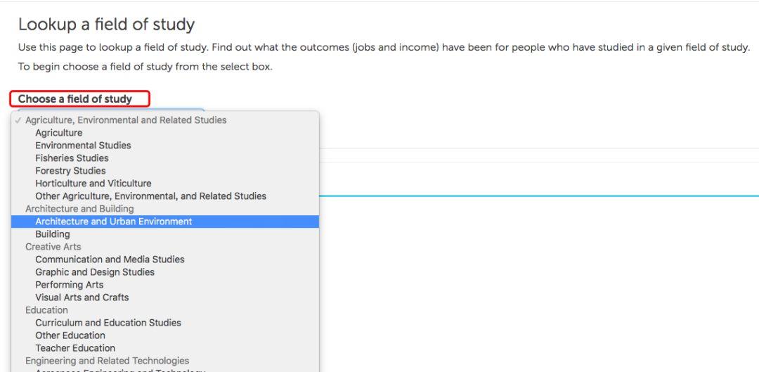 点击页面上的lookup field of study